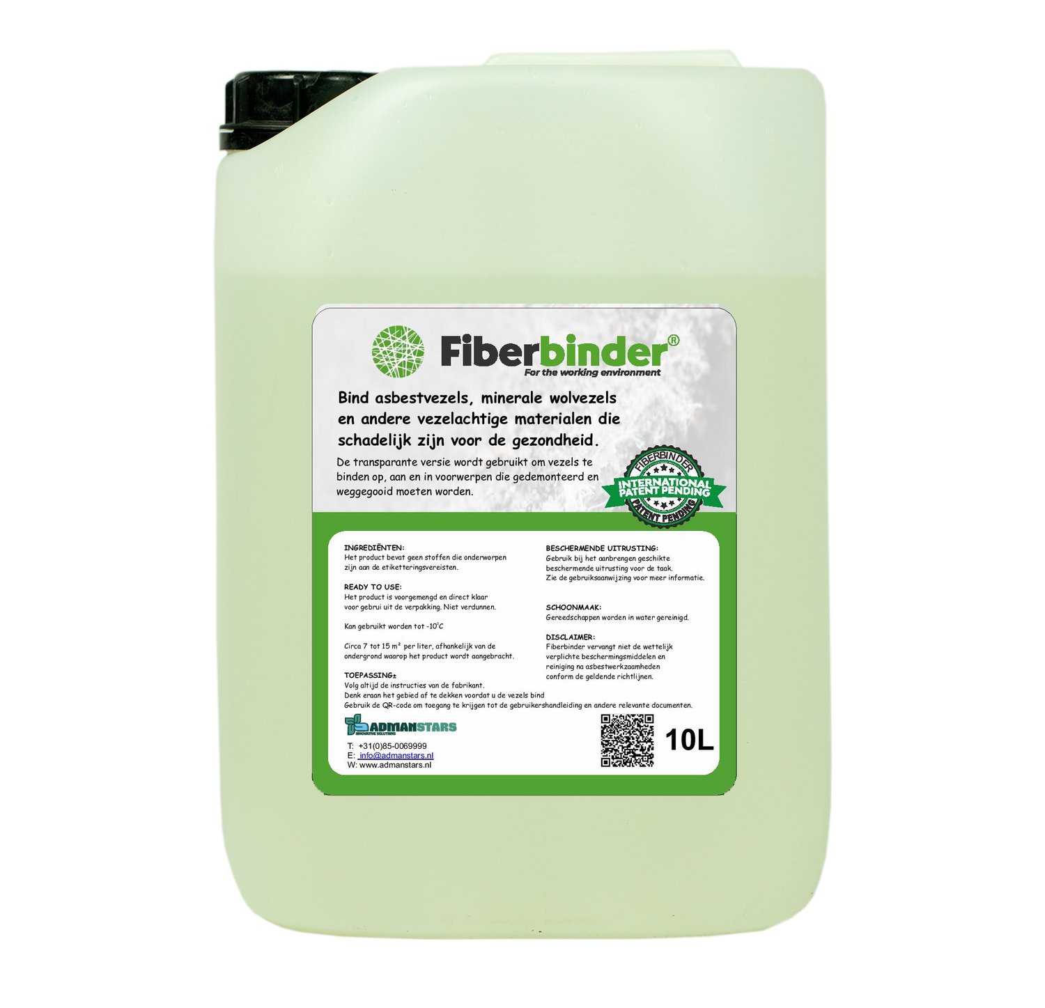 Fiberbinder® is een product voor gezondheid en veiligheid op het werk dat wordt gebruikt om het risico op inademing en verspreiding van schadelijk asbest en minerale wol te minimaliseren.